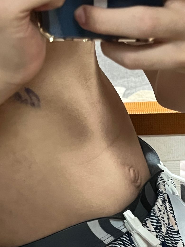 사진상으로는 옆구리–복부 측면이 국소적으로 약간 돌출되어 보이지만, 뚜렷한 종괴 경계가 명확하게 보이지는 않습니다. 말씀하신 양상, 즉 서 있을 때 약간 돌출되고 누우면 들어가며 통증은 없고, 힘을 준다고 더 뚜렷하게 커지지 않는다는 점을 종합하면 전형적인 복벽 탈장 소견과는 다소 차이가 있습니다.