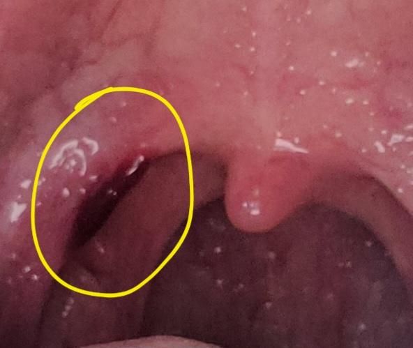 정확하진 않으나 우선 편도 근처에 피가 고여있는걸로 보이는데 이 경우 편도염, 편도 결석 등이 의심될 수 있습니다. 편도염은 편도의 염증으로 인해 부풀고 붉어지며, 때로는 고름이나 피가 생기기도 합니다. 이런 상태에서 삼킬 때 통증이나 찢어지는 느낌이 나기도 하죠. 편도 결석은 편도에 있는 작은 구멍에 세균, 음식물, 세포 찌꺼기 등이 쌓여 단단한 덩어리를 형성하는 것인데, 이 결석이 크면 염증이나 감염을 일으킬 수 있고, 통증이나 불편감을 유발할 수 있습니다.