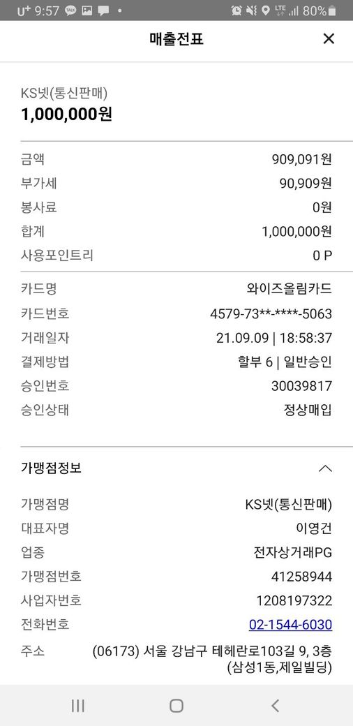 알려주니 1분도 안되서 2회에 걸쳐서 3백, 1백 총 4백만원이 결제가 되었음.(각 할부6개월)