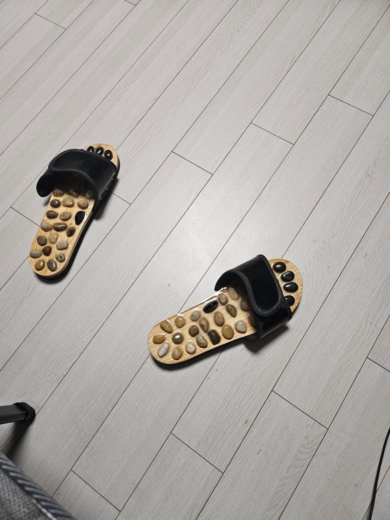 사진에 보다시피 제가 평소 실내에서 지압신발을 계속 신고다닙니다 제 생각엔 지압신발때문에 굳은살이 생기고 거기에 각질들이 일어나는거같은데..