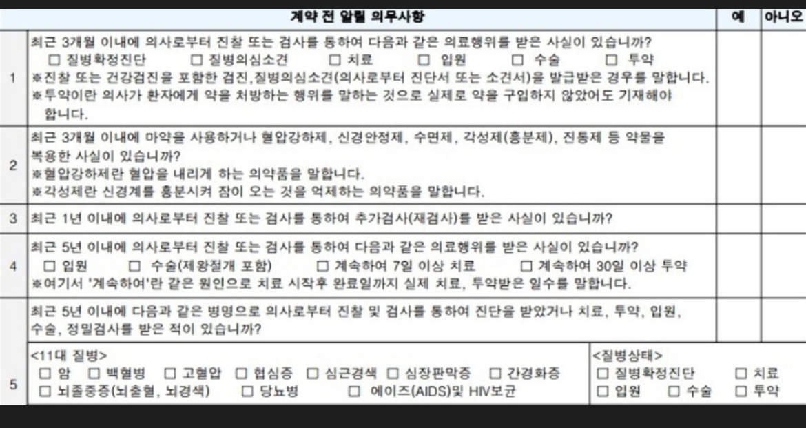 하지만 3개월 이내에 신경안정제 복용한 사실이 있다면 고지 하셔야 합니다
