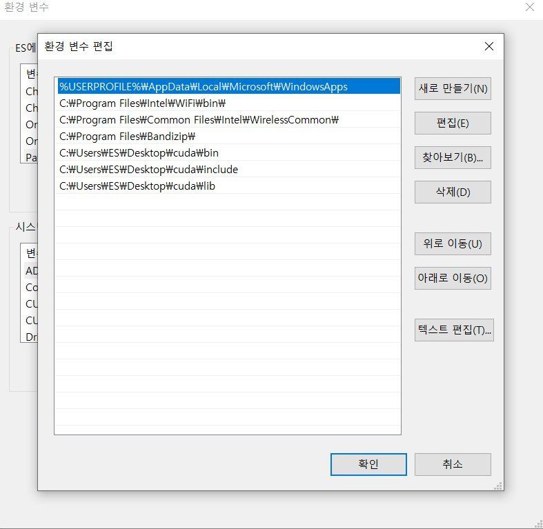 다음은 cudnn을 위한 환경변수위치 입니다.