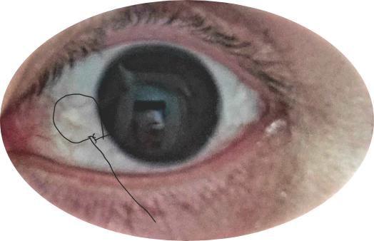 눈 흰자에 작은? 저 검은 펜으로 표기된부분에 약간 빛이나는 금색? 노란색? 점같은 게 생겼는데