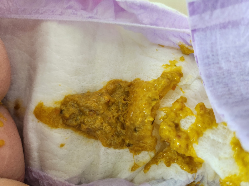 변색이나 모양등도 나쁘지 않고 아이가 섭취한느것에 따라서 물기가 많거나 되직하거나 할수있습니다.