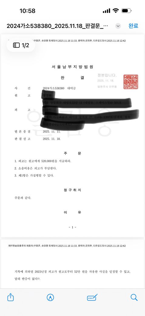 민사 소송에서 승소 판결을 받으셨음에도 채무자가 돈을 갚지 않고, 심지어 정체불명의 대리인까지 내세워 혼란을 주고 있어 답답하시겠습니다. 보유하고 계신 판결정본을 통해 즉시 채무자의 재산에 강제집행(압류)을 하실 수 있으며, 이 과정에서 그동안 밀린 이자나 추가적인 피해 금액까지 포함하여 변제받는 조건으로 합의를 요구하는 것은 채권자로서 당연히 행사할 수 있는 권리입니다. 판결문의 주문 제3항에 "가집행할 수 있다"라고 명시되어 있으므로, 판결이 확정되기 전이라도 지금 당장 채무자의 통장이나 급여 등을 압류하여 심리적 압박을 가하고 520,000원 및 이에 대한 지연손해금, 소송비용까지 모두 받아내실 수 있습니다.