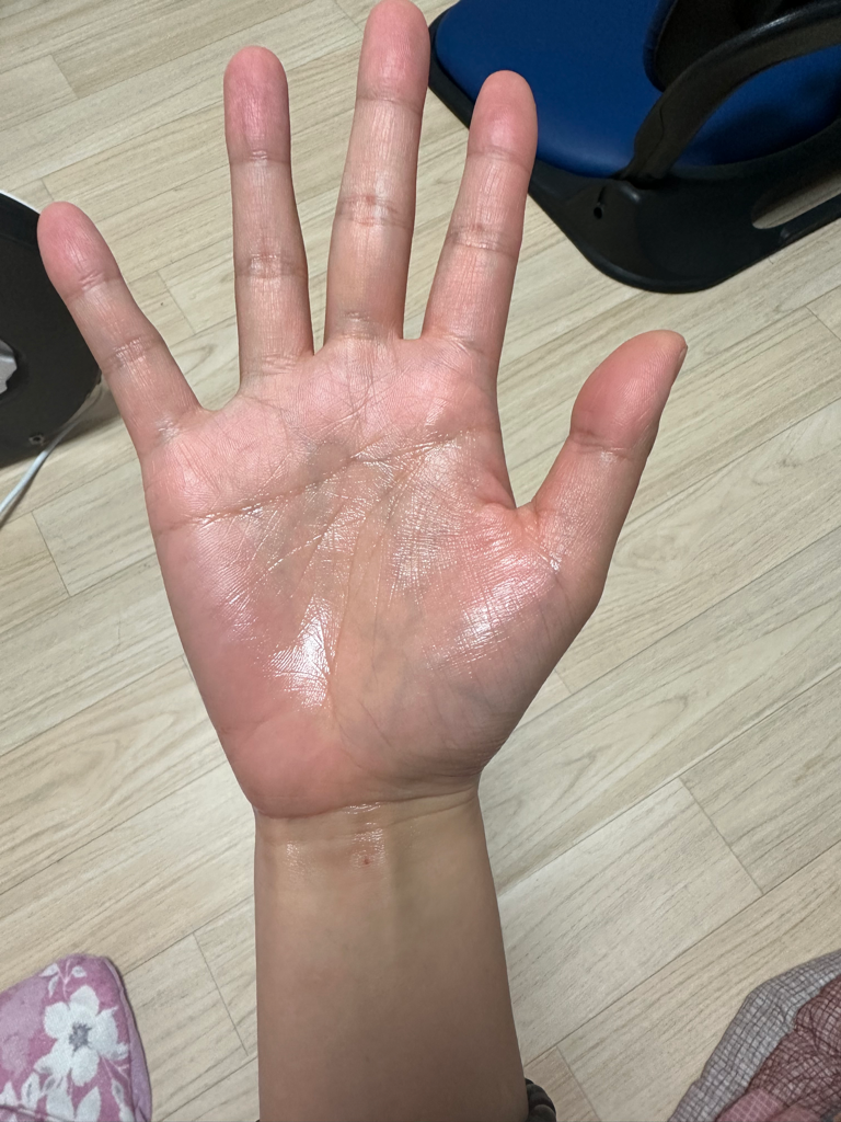 통증이나 부기를 줄이기 위해 손바닥에 냉찜질을 할 수 있습니다. 얼음팩을 부드러운 천에 싸서 하루에 여러 번, 각 15-20분 동안 손바닥에 대어주는 것이 도움이 될 수 있습니다.