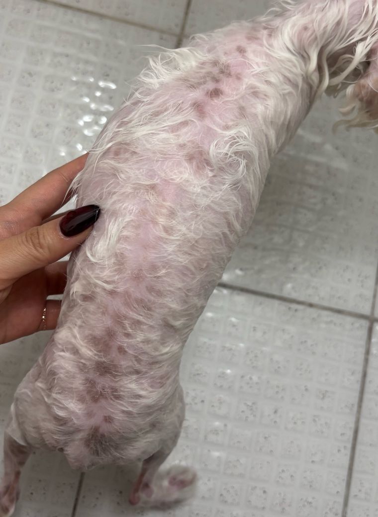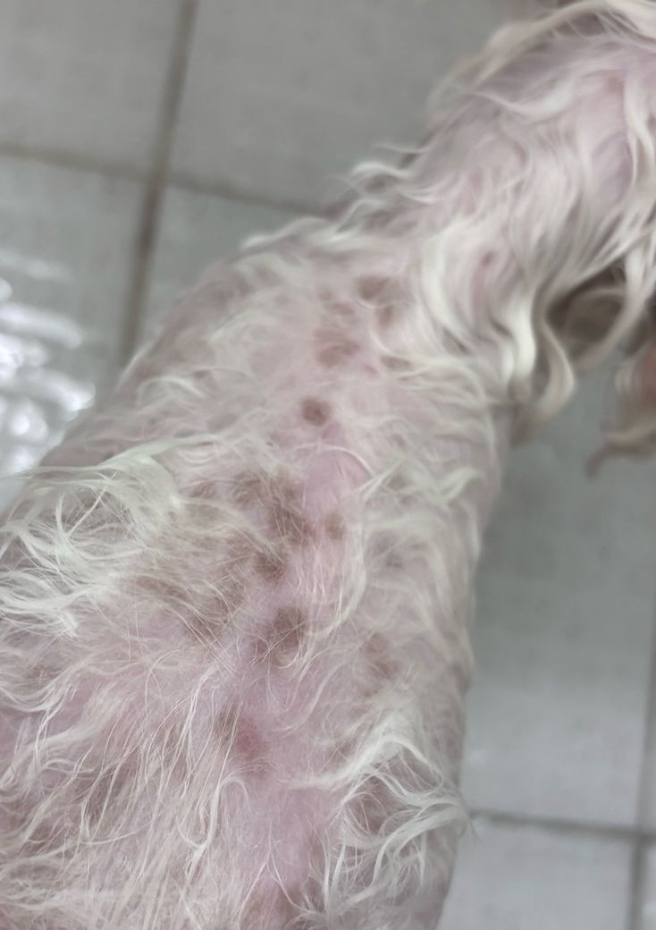 검은 반점 강아지 피부 곰팡이성 피부염일까요?