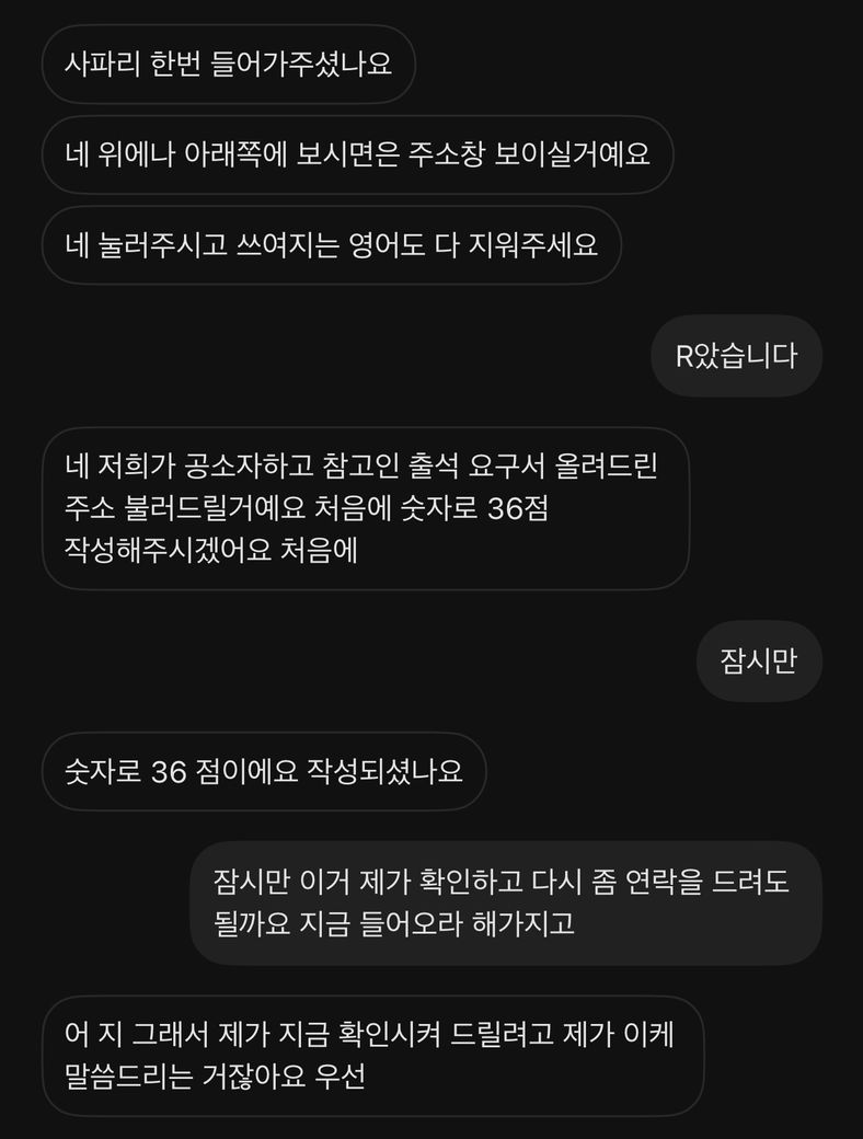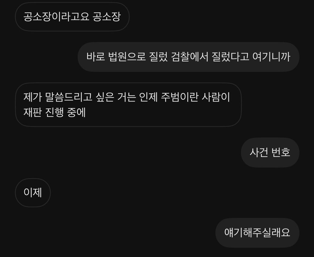 문자로 사건번호 알려달라하니까 그냥 끊었습니다