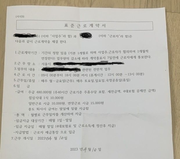 그리고 근로계약서에 한달단위연장계약이라고 적혀있는데
