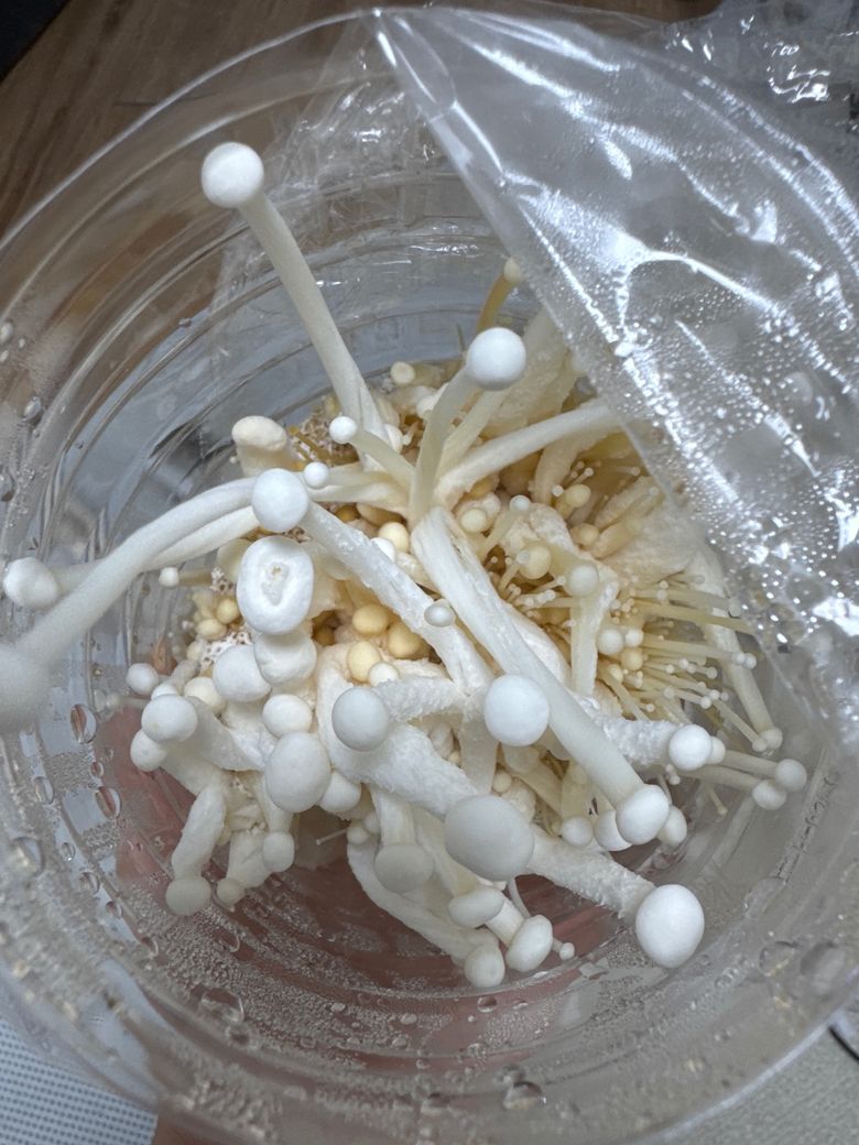 팽이버섯 밑동으로 무한 증식해먹을 수 있대서 해봤는데 애들이 너무 굵은게 뭔가 맞나싶어서요 먹어도 되나요?