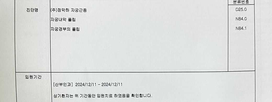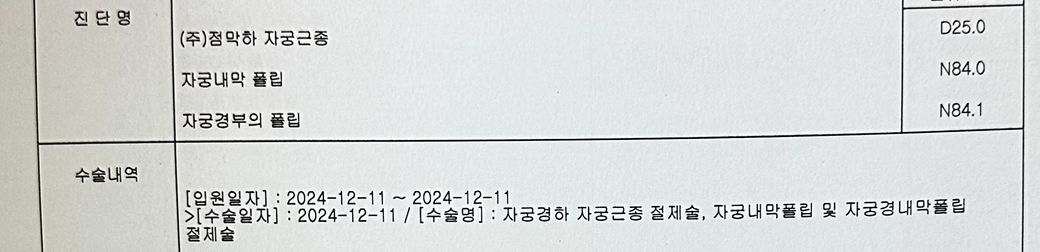 해당 첨부서류랑 자궁내막폴립 진단 및 절제수술 확인되어 16대 질병수술금 지급대상입니다.