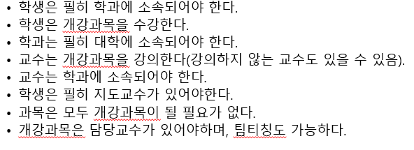 이 부분에 대해서 ER-diagram을 만들어야하는데 개체가 대학, 학과, 학생, 교수, 과목이라고 생각하는데 그렇다면 개강과목이 어떻게 들어가야하는지 잘 모르겠습니다. 그림으로 알려주시면 감사하겠습니다.