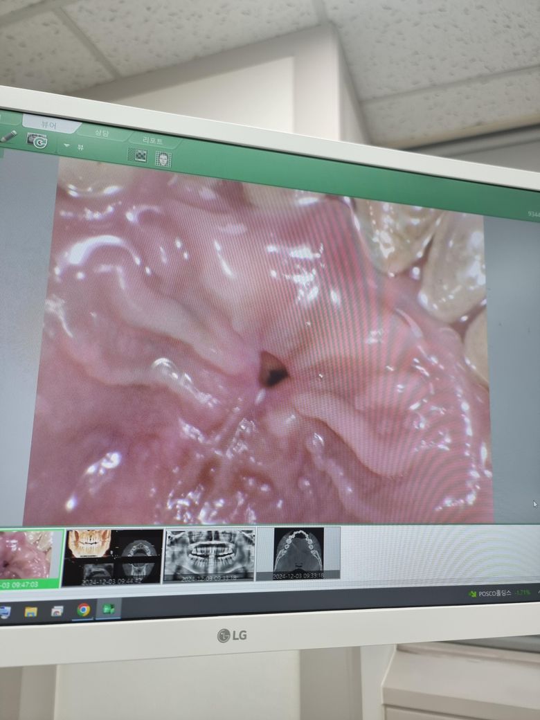 치근단낭종 제거술을 입천장쪽으로 받았고