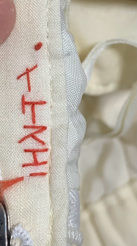 빈티지샵에서 옷을 샀는데 집에 와서 확인하니까 옷 안쪽에 저런 자수가 있더라고요! 인터넷에 イケスエ 라고 검색해보니 아무것도 안 나와서 단어는 아닌 것 같고 사람 이름도 아닌 것 같은데 붉은색 실이라 괜히 좀 찝찝하네요ㅠ 혹시 무슨 뜻인지 아는 분 계신가요?