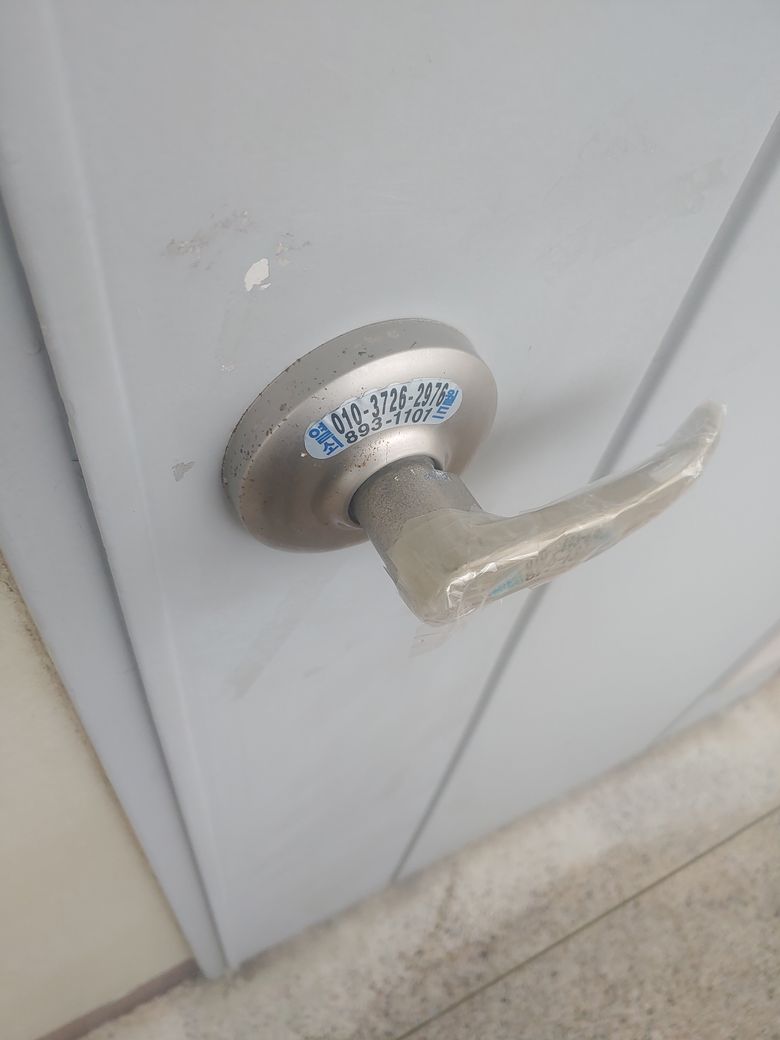 문 손잡이의 기본 구조는 제품들이 비슷해요. 문이 잠기는 부분을 드라이버로 풀고 손잡이 안쪽의 데코를 드라이버로 풀면 분리될거에요.