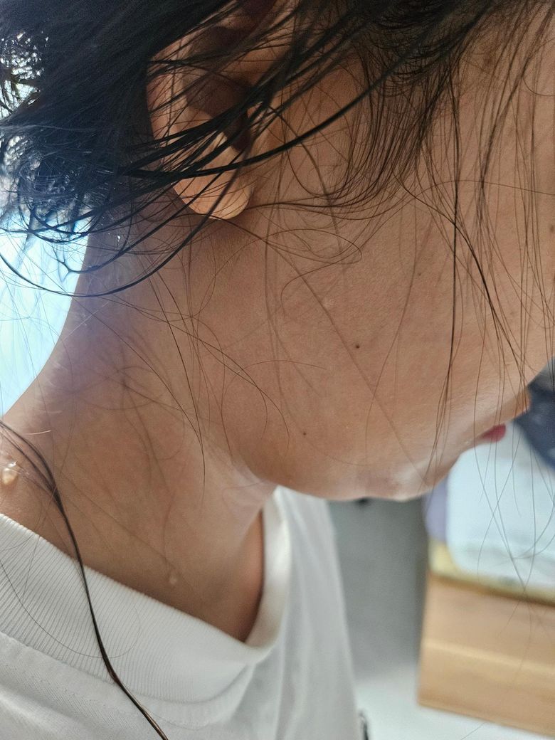이중턱처럼 보이는 소견입니다. 지방분해주사를 맞아보는 것이 효과가 전혀 없을 것이라고 보기는 어렵습니다만, 반대로 확실하게 효과가 있다고 이야기 하기도 어렵습니다. 실제로 맞아보아야 알 수 있을 것으로 사료됩니다. 여담으로 체지방량을 줄여보면 효과가 있을 수도 있습니다.