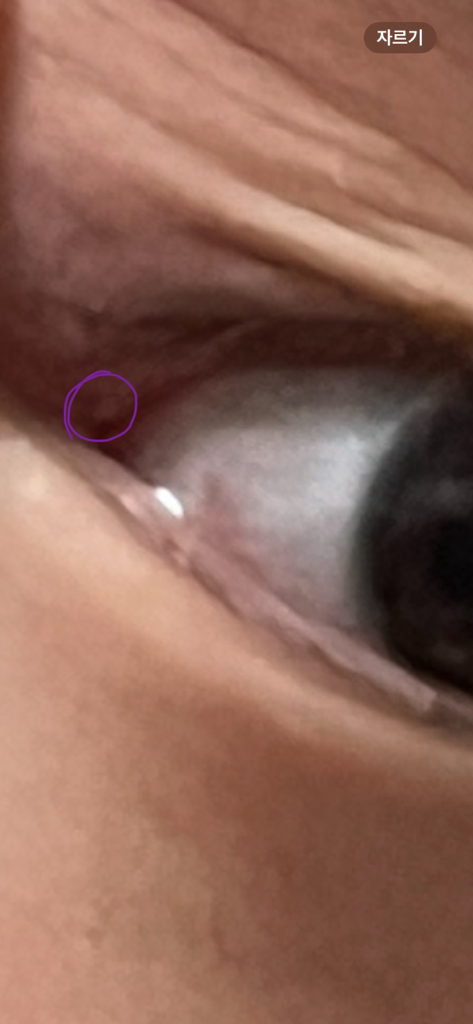 눈안쪽 구석의 눈물 언덕을 촬영하신것이라면 특별한 이상은 없어 보입니다.