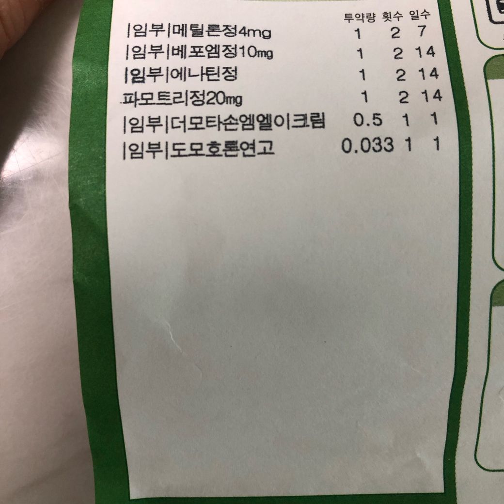 그래서 현재 메틸론정을 제외한 나머지 1주분 약만 남았는데요, 먹는약과 바르는약이 쎄서인지 약+연고 복용 후 손이 거의 3일째부터 급격히 좋아지고