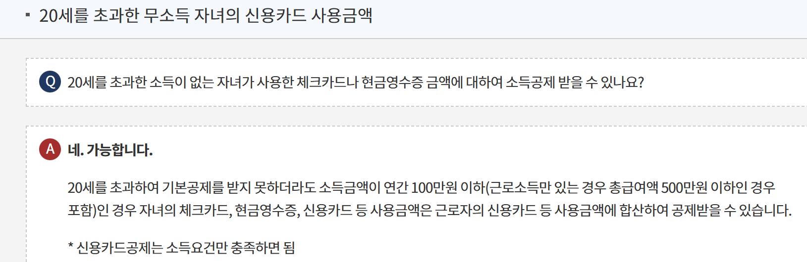성인 자녀 카드 이용 시 부모님 연말정산 때 소득공제되나요?