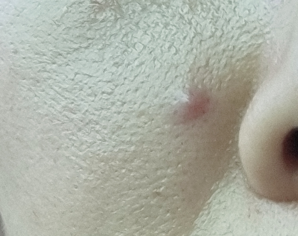 염증성 변화가 온 상태로 아직 화농성 변화까진 생기지 않은 것으로 보이나 손 대지 마시고 인근 피부과를 방문하여 정확한 치료 상담을 받으시길 권합니다.