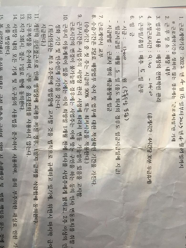 첫 근로계약 4시간 30분 54,000