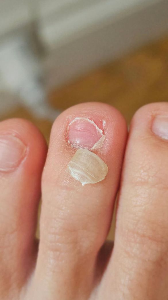 무튼 발톱이 통증없이 피부와 분리돼 달랑거려서 붙어있는부분 빼고 잘랐는데요. 사진처럼 아주 작게 오른쪽 부분만 붙어있고 나머지는 피부에서 분리됐어요.