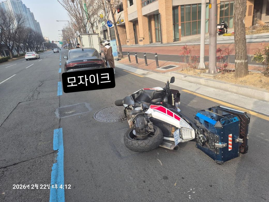 두산오거리에서 우회전 후 직진중 상대차량이 유턴후 급차선 변경 4개차로를 한꺼번에 변경하였습니다 헬멧캠 달려있고 보험접수는 하였으나 상대측은 비접촉이다 현장출동에서는 타이어 자국이랑 다확인했고 사진도 찍고갔습니다
