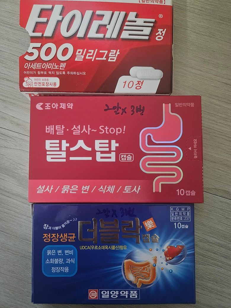 장염이나 몸살이 심한 경우 지사제와 타이레놀과 유산균 정장제는 모두 복용을 같이 해주셔도 문제 없습니다. 하루 3회 복용을 권장드립니다.