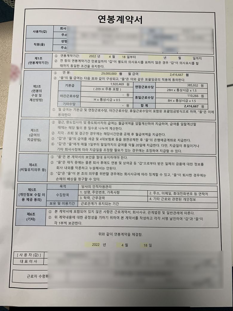 *연봉 2,900 / 4대보험 가입 / 수습기간 3개월 중 급여는 100%지급 하기로 계약함