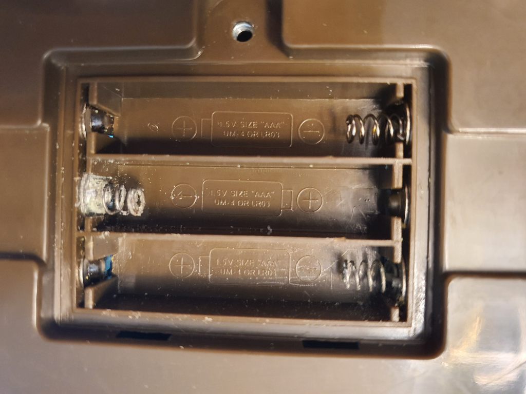 말그대로 애기 장난감 건전지 교체하려고 봤더니 스프링부분에 하얀 가루들이 많은데 뭘까요?