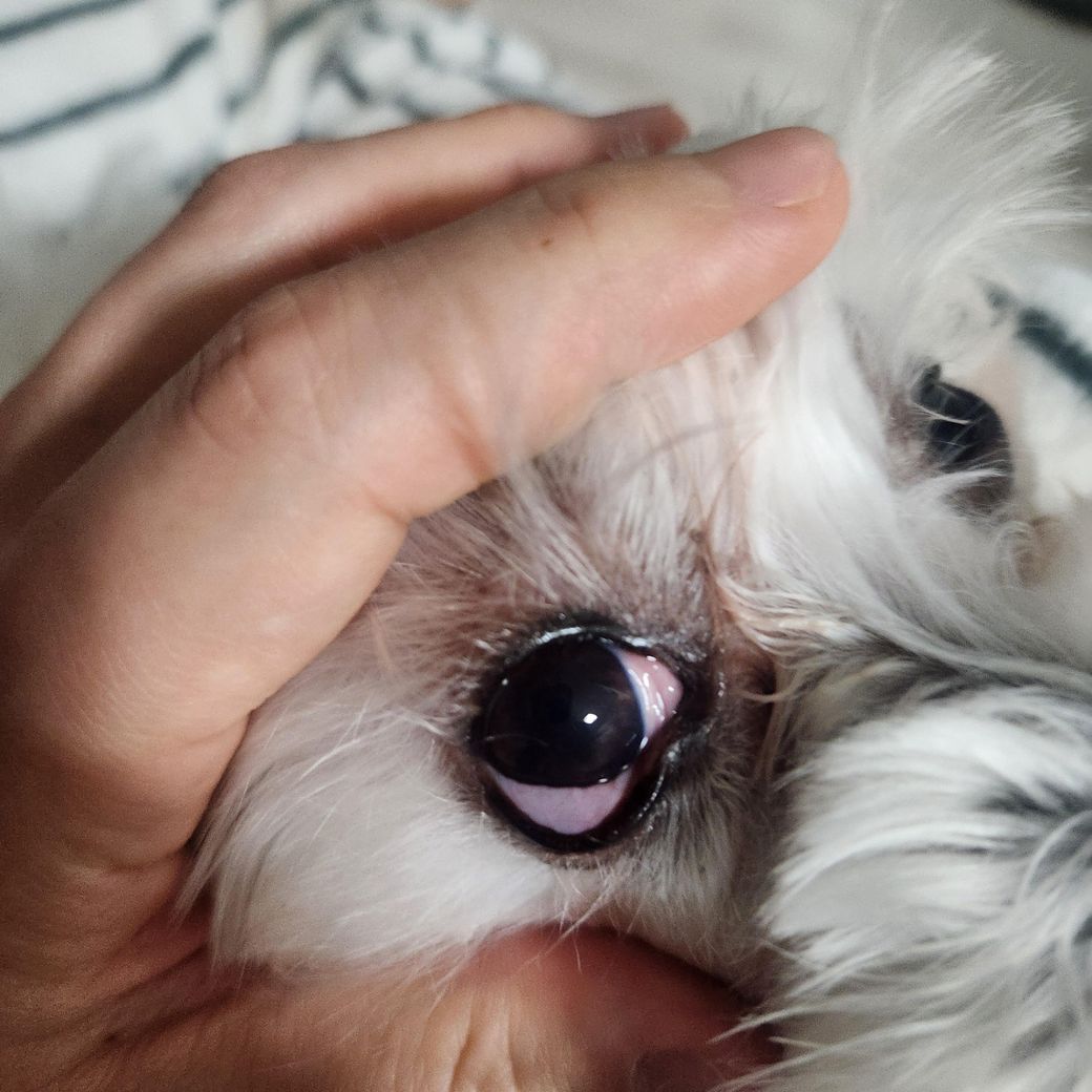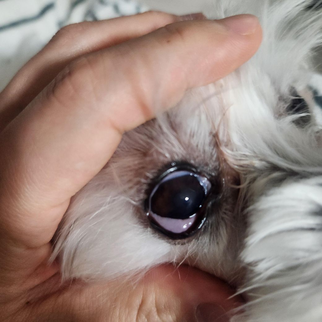 강아지 눈이 이상해요 어제 조그만한 물건에 맞았아요