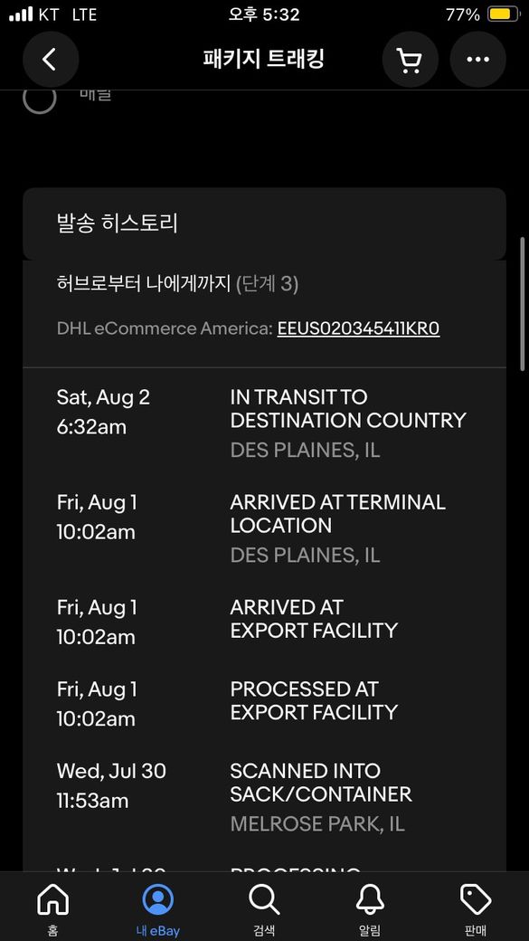 이베이에서 아이폰 가죽케이스를 시켰는데 이베이를 처음 사용해봐서 언제쯤 올지 가늠이 안되네요 아래 시진 첨부한 마지막 단계에서 거의 일주일 멈춰있네요..