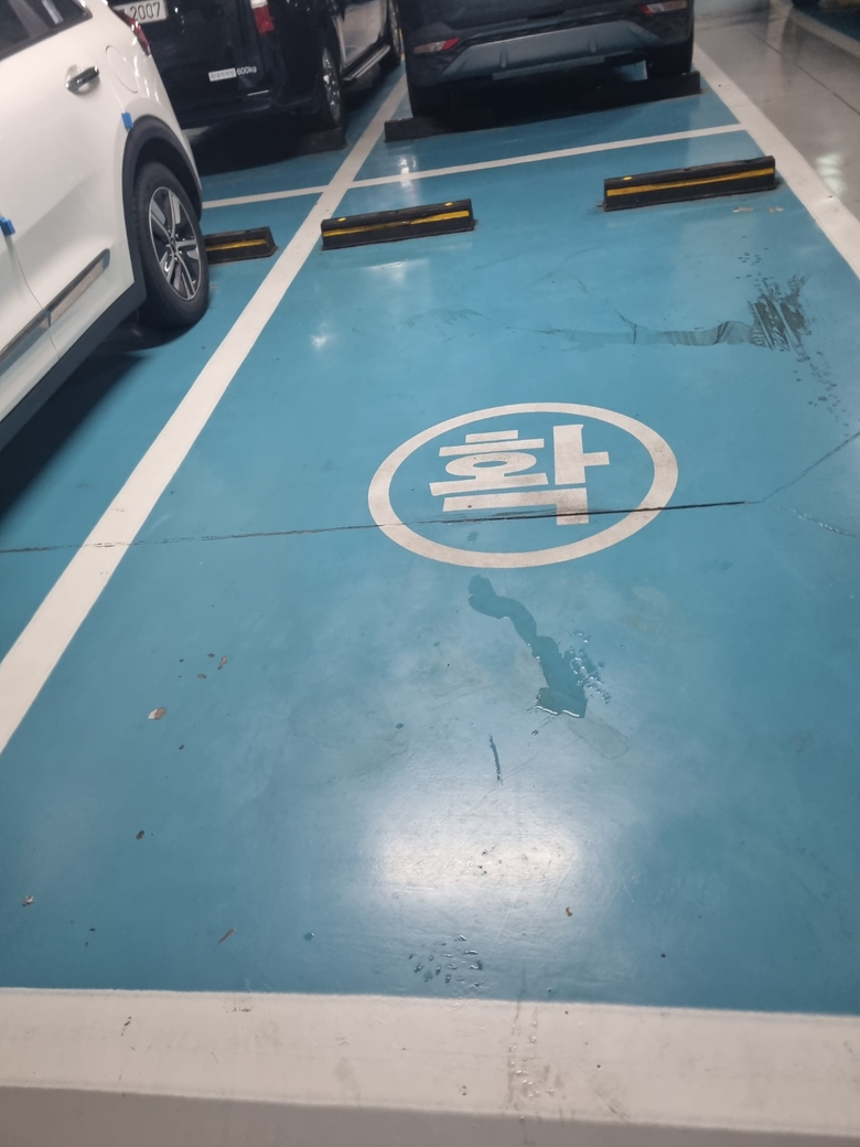 대형빌딩 주차장에 들어갔더니 사진과 같이 주차면에 "확" 이란 표시가 되어 있습니다