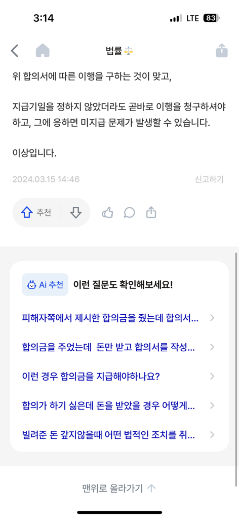 가해자가 그러한 주장으로 미지급할 위험이 있으니 기존 합의대로 말일마다 돈을 지급하도록 민사절차를 취하는 게 맞다는 내용입니다.