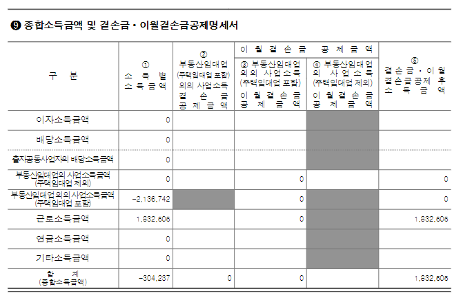 올해 결손금과 근로소득금액 공제가 안되나요?
