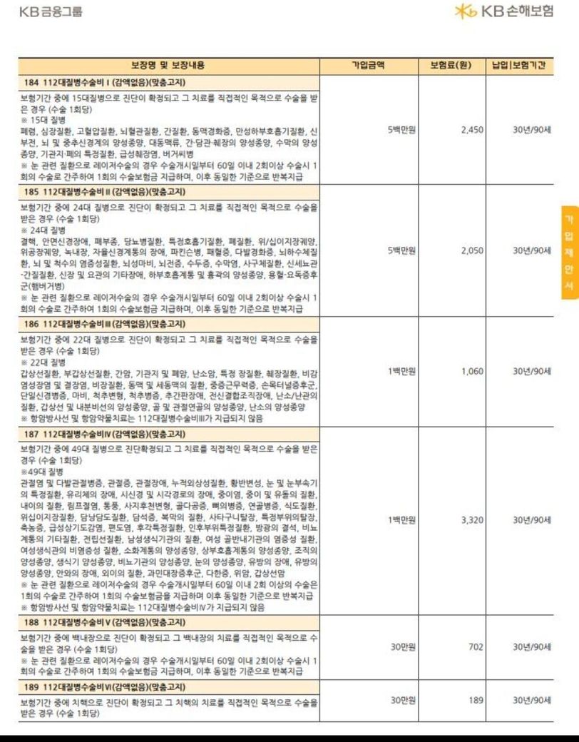 대수술비가 중복이고 담보가 너무 많습니다. 그러니 30년납 90세 만기로 해도 비싸죠.