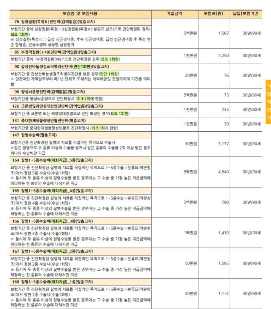 중복항목인 N대수술비, 심장, 뇌 수술비는 제거하고 암보장은 암주요치료비와 비급여 항암약물 치료비로 변경하고요. 가능하면 20년납으로 조정하는 것이 좋습니다.