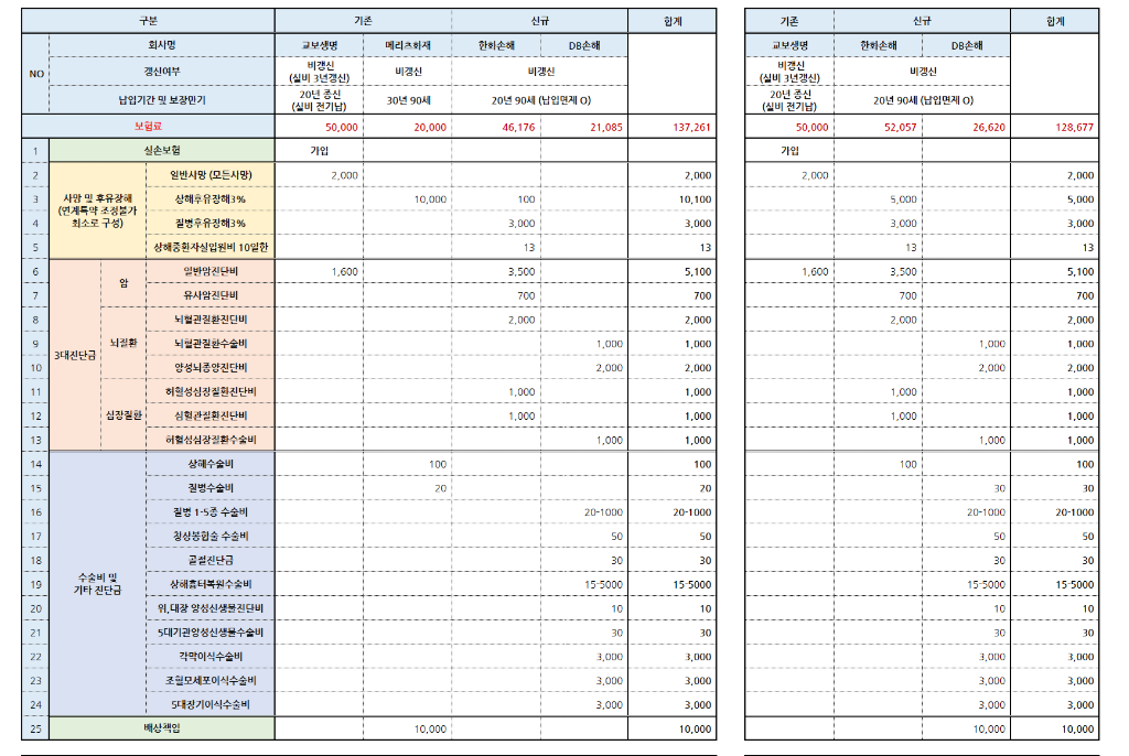 이럴때는 보험료가 1원이라도 더 저렴한 상품으로 히시는 걸 추천드립니다.