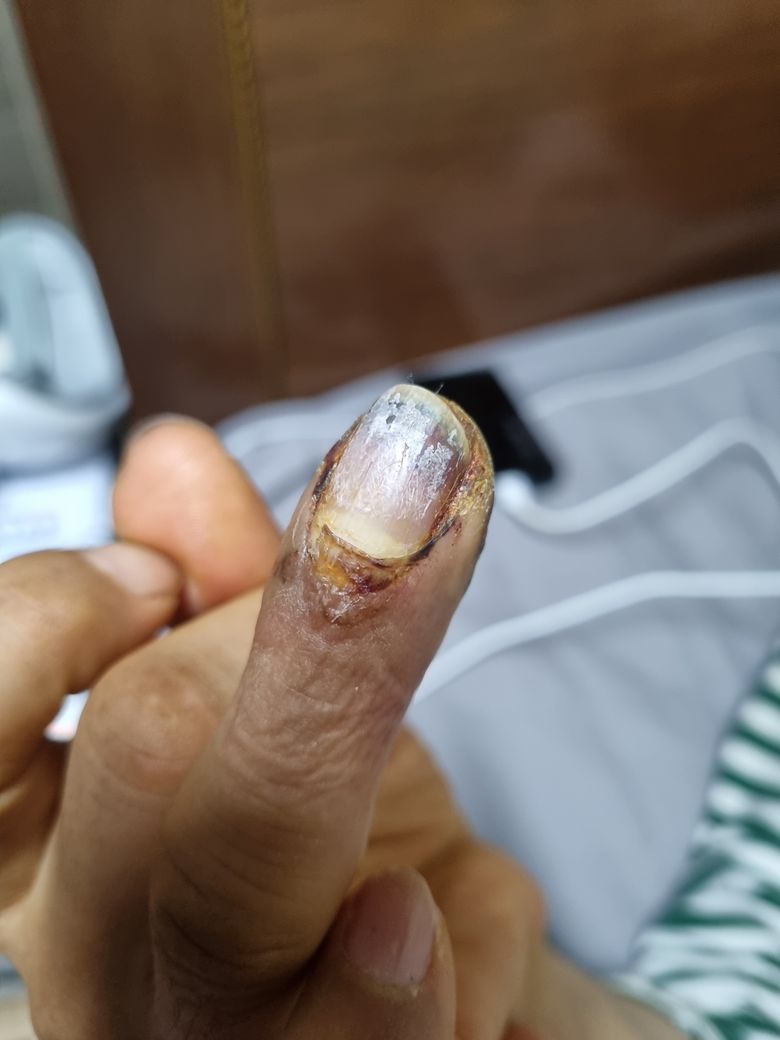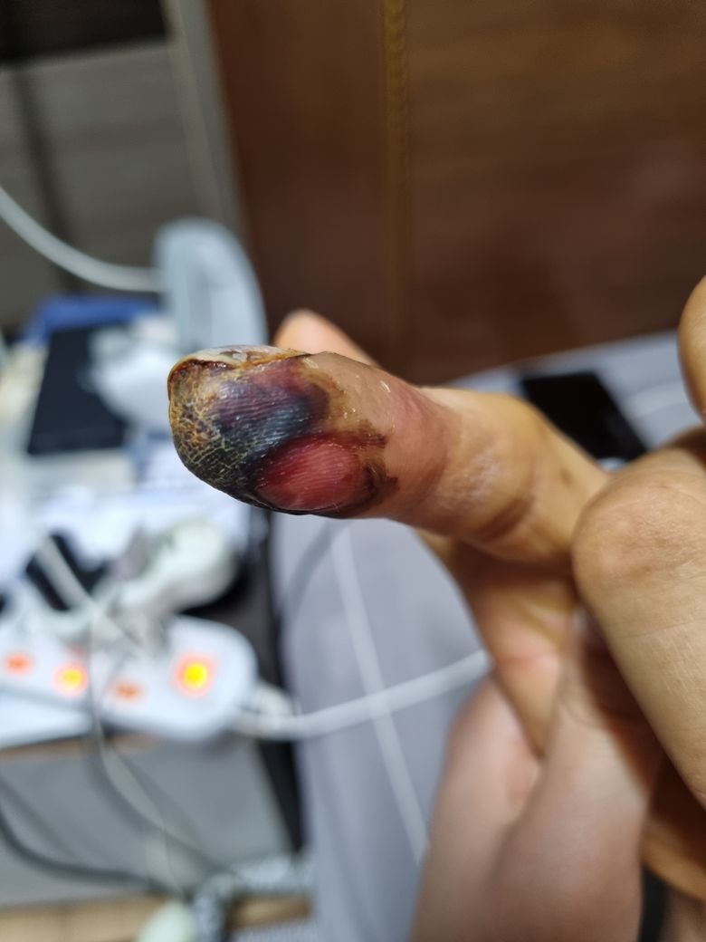 부딪힘 사고 손가락 골절로 인한 피부 괴사