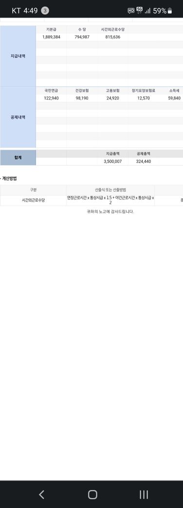 기본급 바로 우측에 "수당"이 무슨 수당인지 모르겠지만