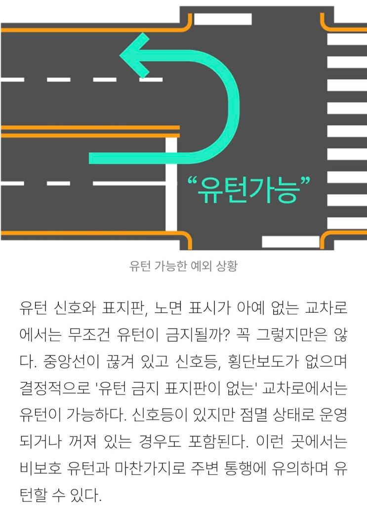 유턴 표지도 바닥 표시도 없는데 유턴 가능한 곳인가요?