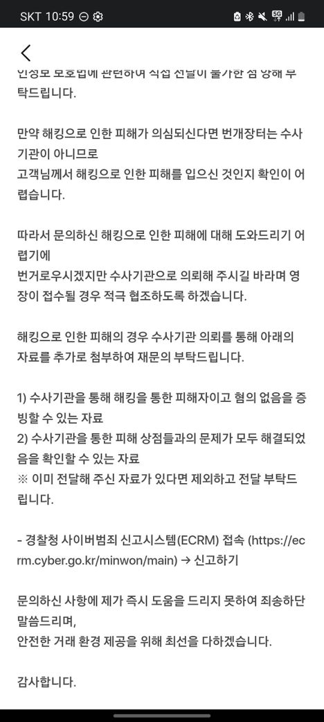 중간에 제가(약 2년전) 번개장터를 사용하려했다가 안돼서 무작정 탈퇴후 재가입을 했던적이 있는터라 현재 제 계정내에선 1:1문의외엔 어떤 정보도 얻을수가 없습니다.