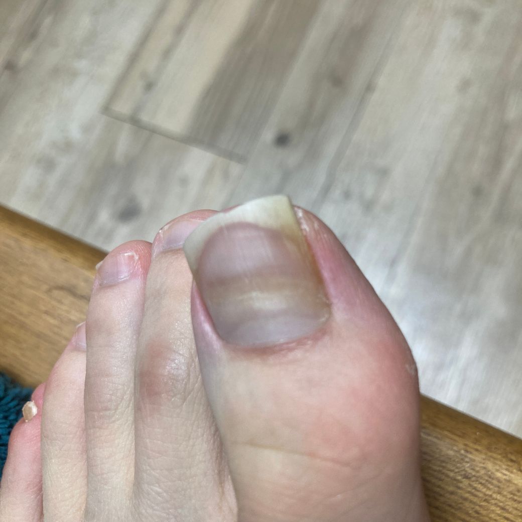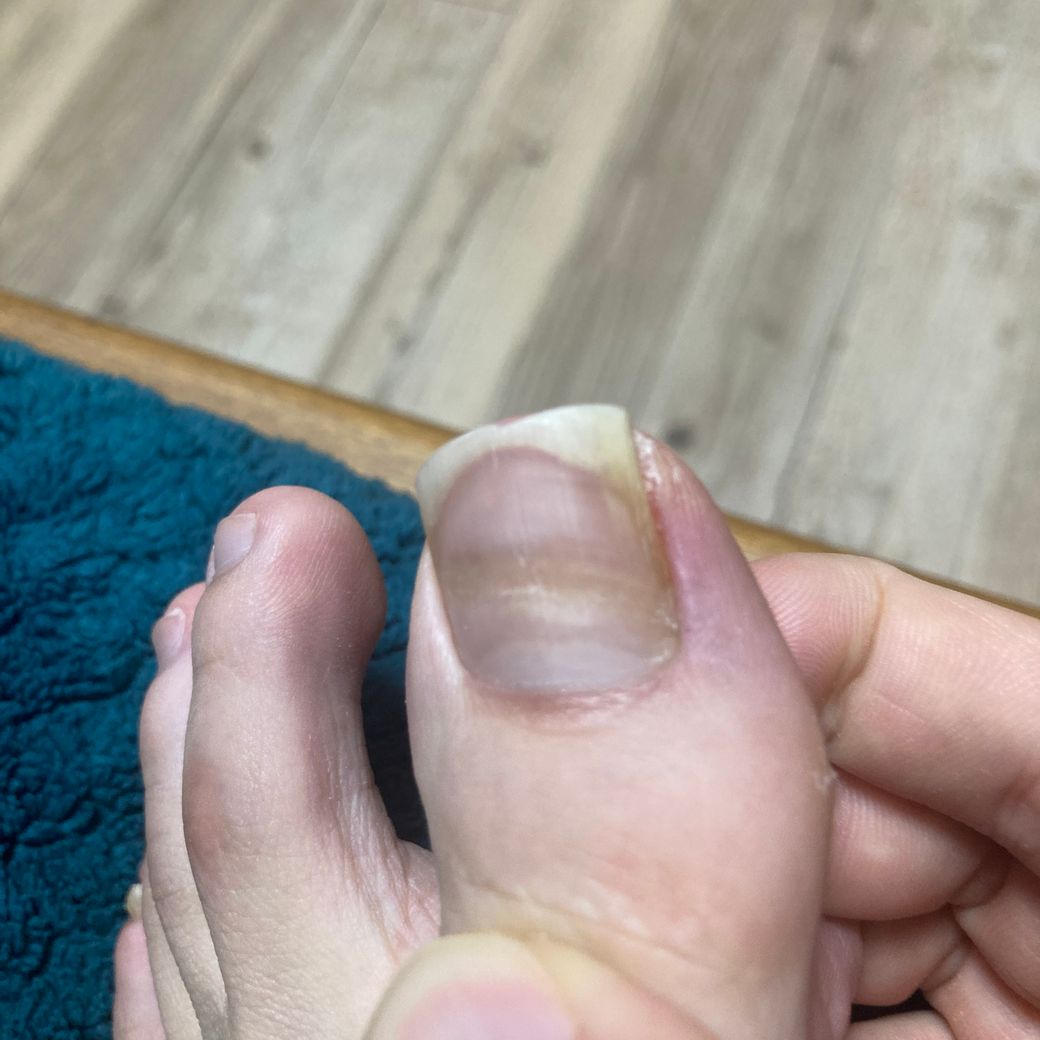 사진처럼 엄지발톱에 분홍색? 세로선이 생겼는데요.