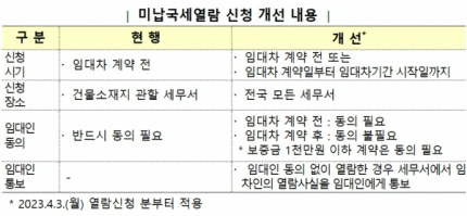 정부는 오는 4월 1일부터 보증금 1천만원 이상의 주택임대차계약 및 상가 임대차 계약의 경우 임대인의 동의 없이도, 임차인이 임대차계약서를 지참하여 세무서에서 체납여부를 조회 확인 가능하도록 하였습니다.