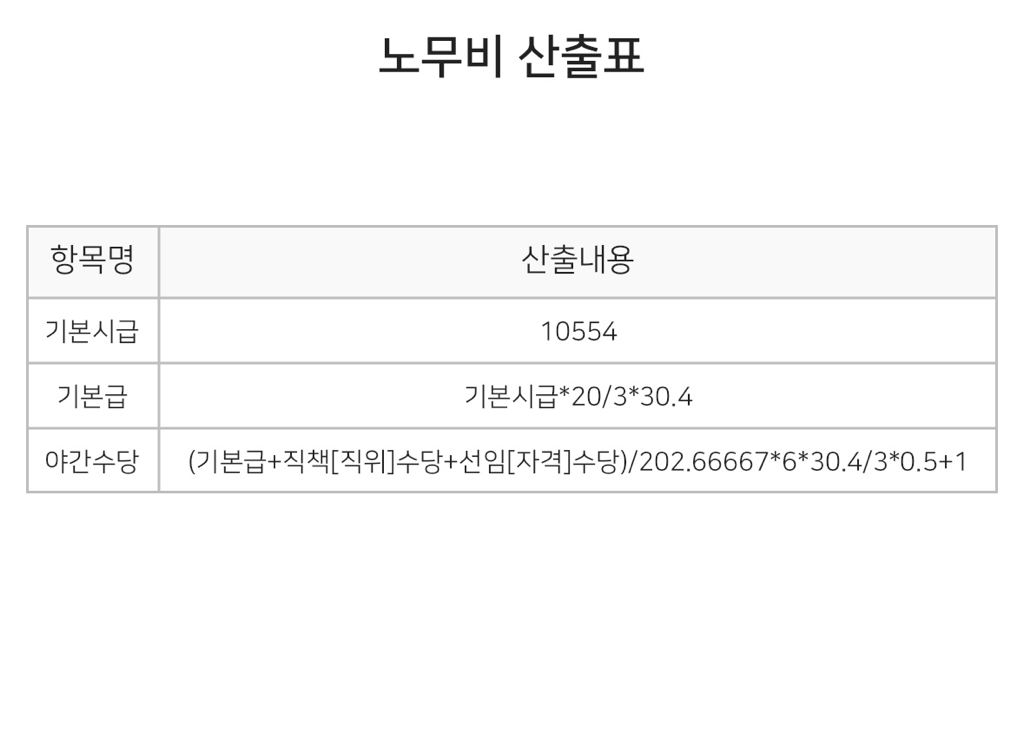 당비휴 근무인데 기본급 / 야간수당 뒤에 있는 숫자가 뭘의미하는건가요?