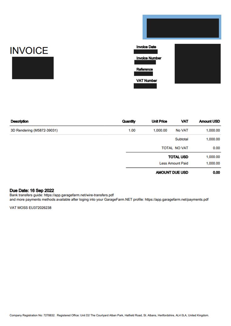 해당 업체에서 받은 인보이스입니다.