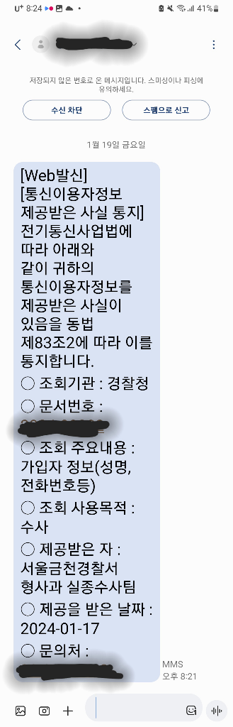 본인이 명확히 확인하려면 해당 경찰청에 문의하여야 하는데, 어디 경찰청인지 기재가 없다면 더욱 믿기 어렵습니다.