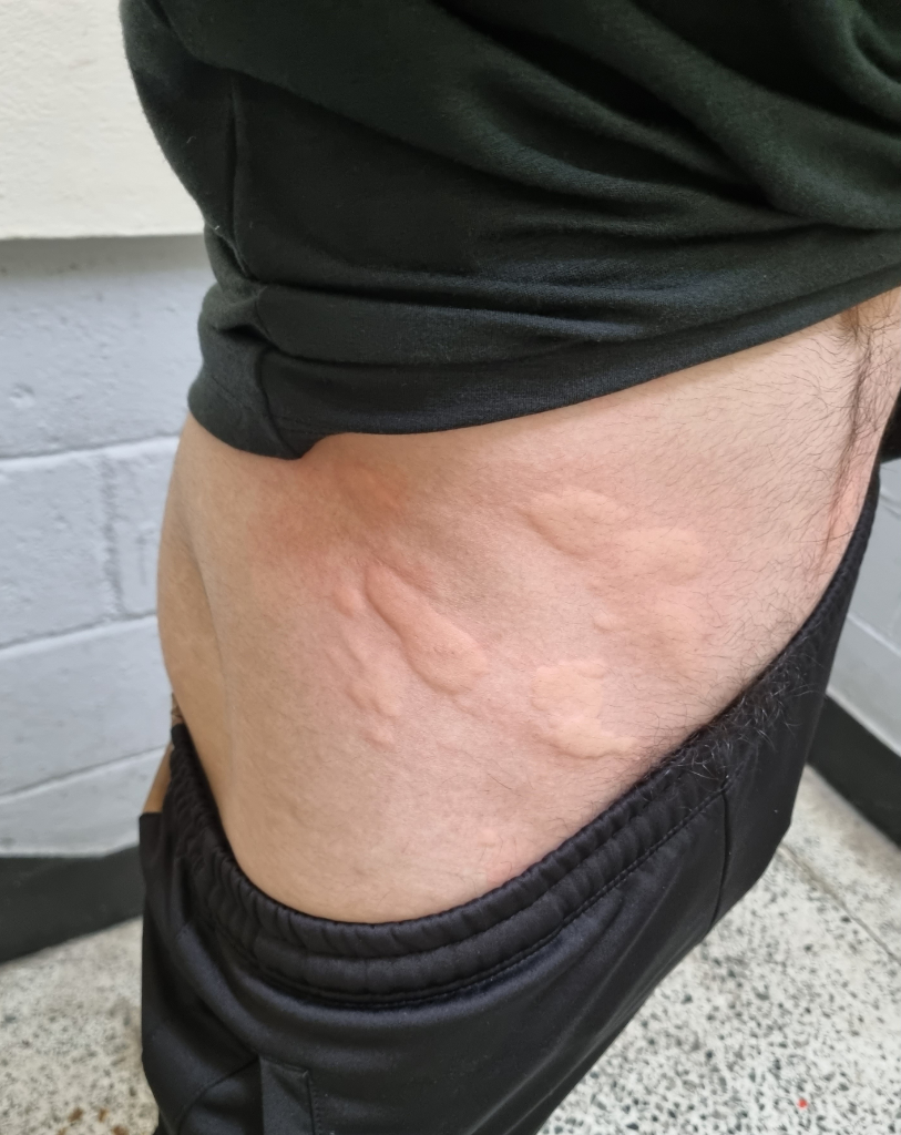두드러기이고 알러지반응이 맞아보입니다.