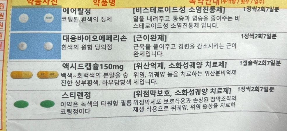 이번에 어깨 부상으로 받은 약이 이렇습니다