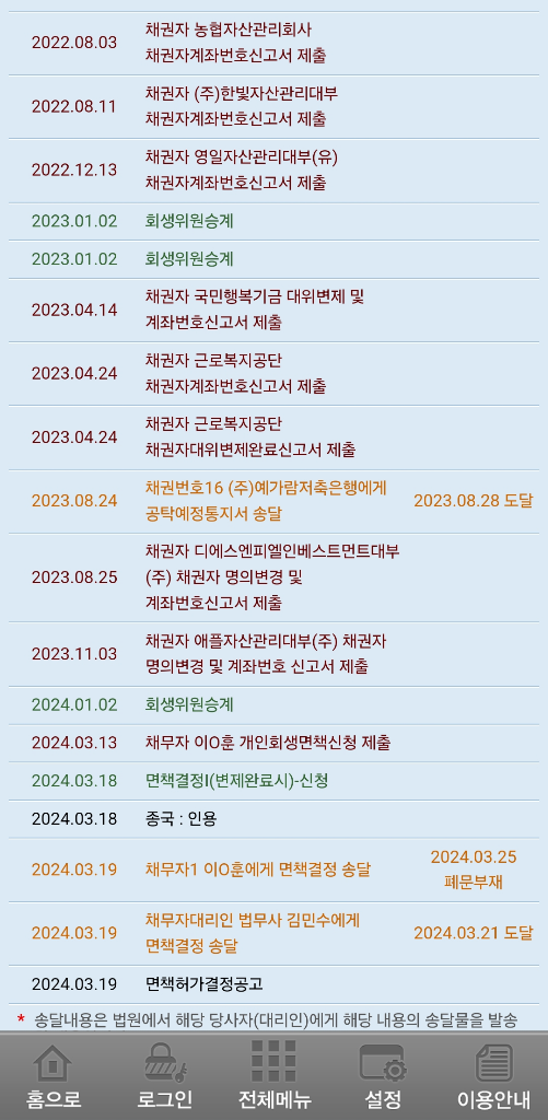 면책결정이 허가되었고 법무사 사무일에서 받은 것이 확인되네요.